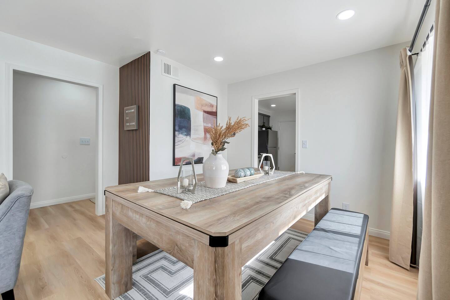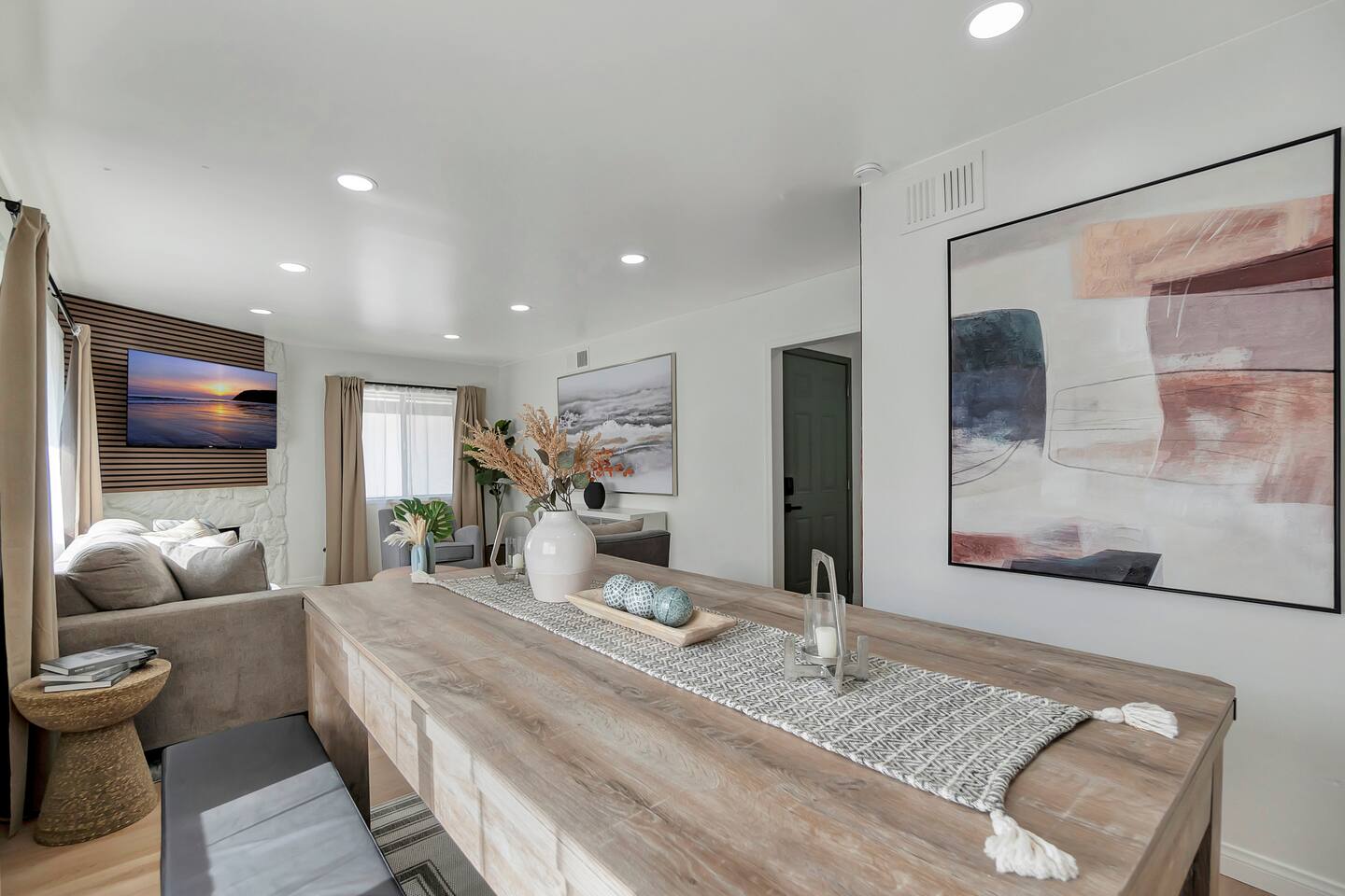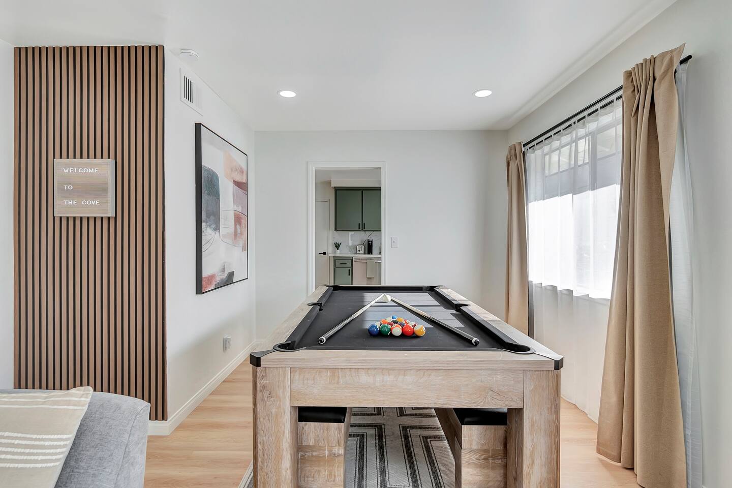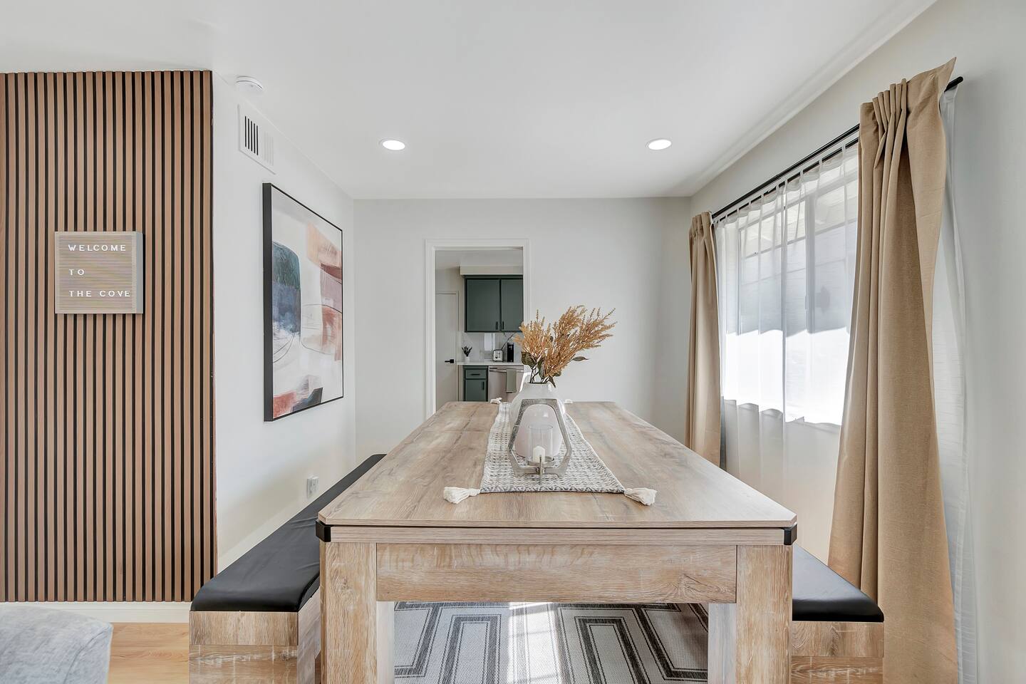 Welcome to The Cove! Your perfect family retreat just blocks from Disneyland! This recently remodeled 2BR, 2BA home offers all the comforts you need for a magical stay. With a King bed, 2 bunk beds, a sofa bed, and an air mattress, it comfortably sleeps up to 10 guests. Enjoy modern amenities, a fully equipped kitchen and laundry, and an attached 2-car garage. Our family-friendly atmosphere makes it an ideal base for your Disneyland adventures. Book now and experience the magic just steps away!