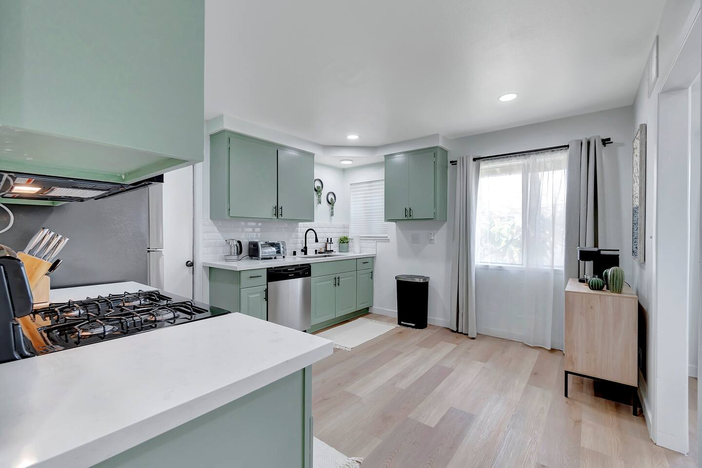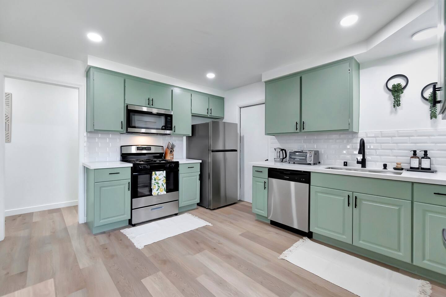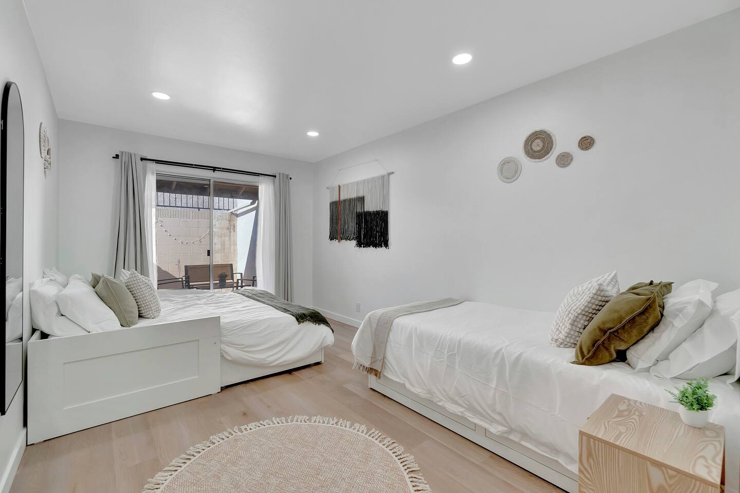 Welcome to Your Stylish, Contemporary Retreat PRIME LOCATION - Just 8 minutes driving to Disneyland - Only 8 minutes driving to the Anaheim Convention Center - 10 minutes driving to Angel Stadium - Beautiful beaches within 22-30 minutes - Explore Los Angeles in 30-50 minutes - Convenient and central location in Orange County YOUR HOME AWAY FROM HOME - Spacious 1100 sqft apartment with an outdoor patio - 2 bedrooms and 2 full bathrooms for ultimate comfort and privacy - Cozy living room with a fully equipped kitchen for all your culinary adventures - Recently remodeled with stylish, high-quality finishes TOP NOTCH AMENITIES - High-speed WiFi for all your browsing needs - Smart TV with Netflix, Youtube, Disney+, Hulu, ESPN and more, for your entertainment - Family friendly board games and puzzles - Modern kitchen appliances - Washer and dryer in garage - Dedicated parking space - Contemporary bathrooms - Accommodates up to 10 guests: 1 King Bed, 2 Twin Daybeds that can convert into 2 King-size beds, 1 Sofa Bed, and 1 Air Mattress - Coffee machine and coffee! - Travel crib and high chair available - Patio with grill and outdoor furniture OUR COMMITMENT TO YOU We’re devoted to making your stay in Orange County truly memorable and delightful. HOUSE RULES - No loud music or large gatherings (maximum of 10 guests total) - No smoking of any kind, including marijuana - Be considerate of our neighbors and keep noise levels down - One assigned parking spot; additional street parking is available RESPECTFUL ENVIRONMENT This is a peaceful home, not a party venue. We ask all guests to respect our community and their surroundings. ALWAYS AT YOUR SERVICE Your host is here to ensure your stay is smooth and enjoyable. Feel free to reach out for any assistance! Thank you for choosing The Evergreen home for your next adventure. We look forward to welcoming you on your next stay! Please Note - At owner's discretion additional verification and/or background check/credit check may be required prior to check in. A signed guest lease and small deposit may also be required prior to check in.