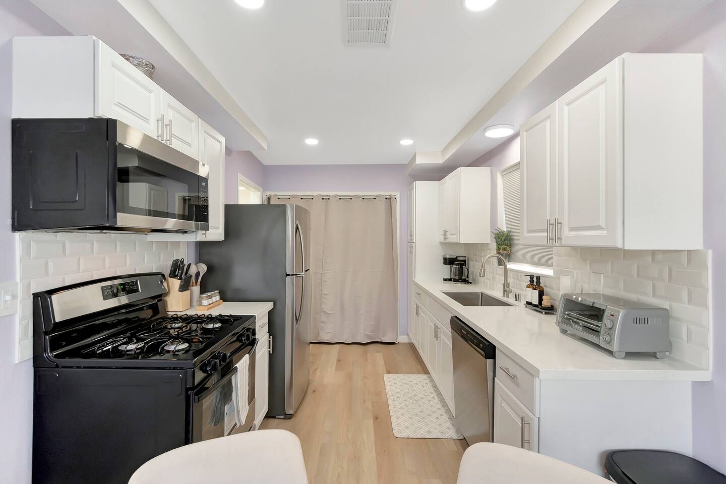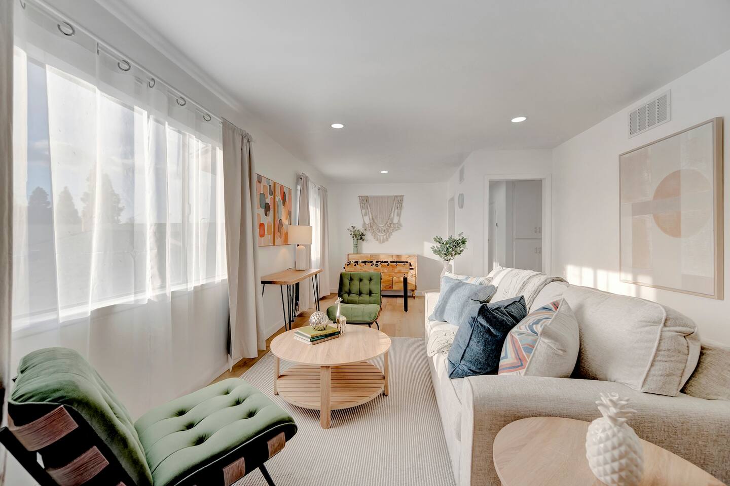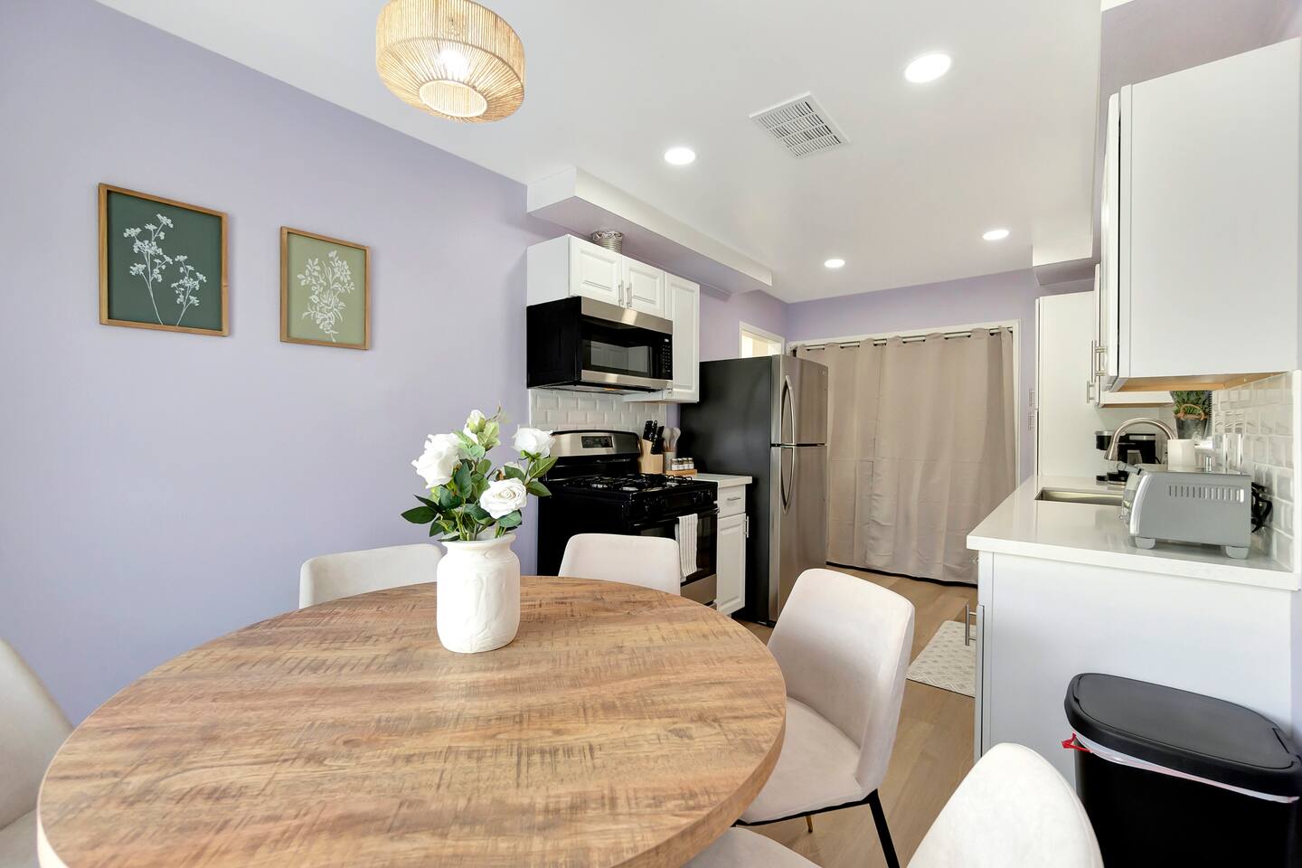 Welcome to Your Serene, Contemporary Retreat PRIME LOCATION - Just 8 minutes driving to Disneyland - Only 8 minutes driving to the Anaheim Convention Center - 10 minutes driving to Angel Stadium - Beautiful beaches within 22-30 minutes - Explore Los Angeles in 30-50 minutes - Convenient and central location in Orange County YOUR HOME AWAY FROM HOME - Spacious 1100 sqft apartment with an outdoor patio - 2 bedrooms and 2 full bathrooms for ultimate comfort and privacy - Cozy living room with a fully equipped kitchen for all your culinary adventures - Recently remodeled with stylish, high-quality finishes TOP NOTCH AMENITIES - High-speed WiFi for all your browsing needs - Smart TV with Netflix, Youtube, Disney+, Hulu, ESPN and more, for your entertainment - Family friendly board games, puzzles, and convertible multi-game foosball table - Modern kitchen appliances - Washer and dryer in apartment - Dedicated parking space - Contemporary bathrooms - Accommodates up to 6 guests: 1 King Bed, 2 Twin Beds, 1 Sofa Bed - Coffee machine and coffee! - Travel crib pack and play and high chair available - Patio with grill and outdoor furniture OUR COMMITMENT TO YOU We’re devoted to making your stay in Orange County truly memorable and delightful. HOUSE RULES - No loud music or large gatherings (maximum of 8 guests total) - No smoking of any kind, including marijuana - Be considerate of our neighbors and keep noise levels down - One assigned parking spot; additional street parking is available RESPECTFUL ENVIRONMENT This is a peaceful home, not a party venue. We ask all guests to respect our community and their surroundings. ALWAYS AT YOUR SERVICE Your host is here to ensure your stay is smooth and enjoyable. Feel free to reach out for any assistance! Thank you for choosing The Floral Terrace home for your next adventure. We look forward to welcoming you on your next stay! Please Note - At owner's discretion additional verification and/or background check/credit check may be required prior to check in. A signed guest lease and small deposit may also be required prior to check in.