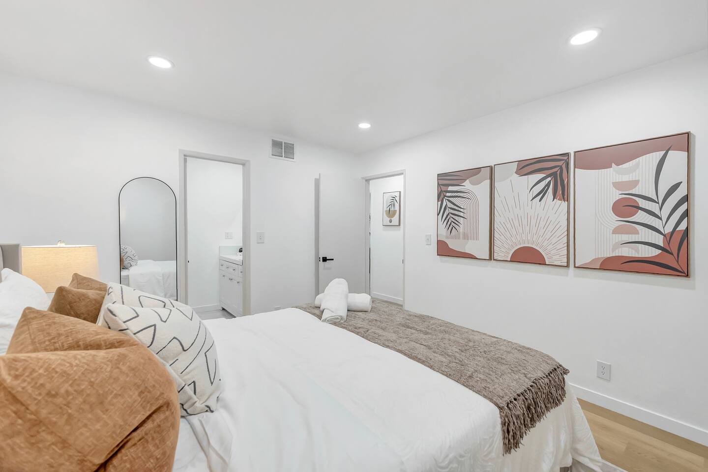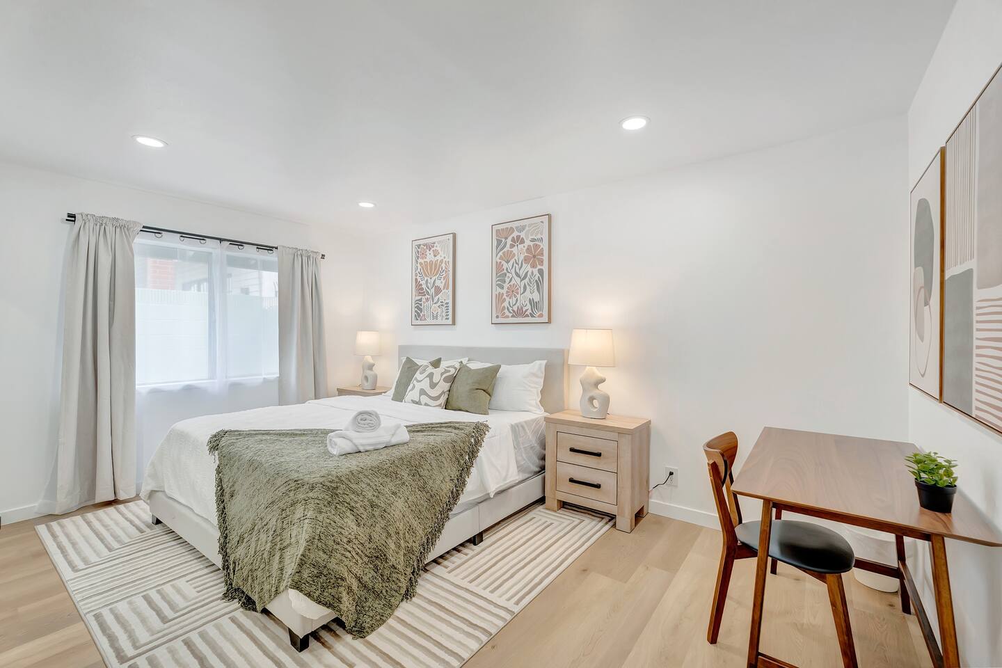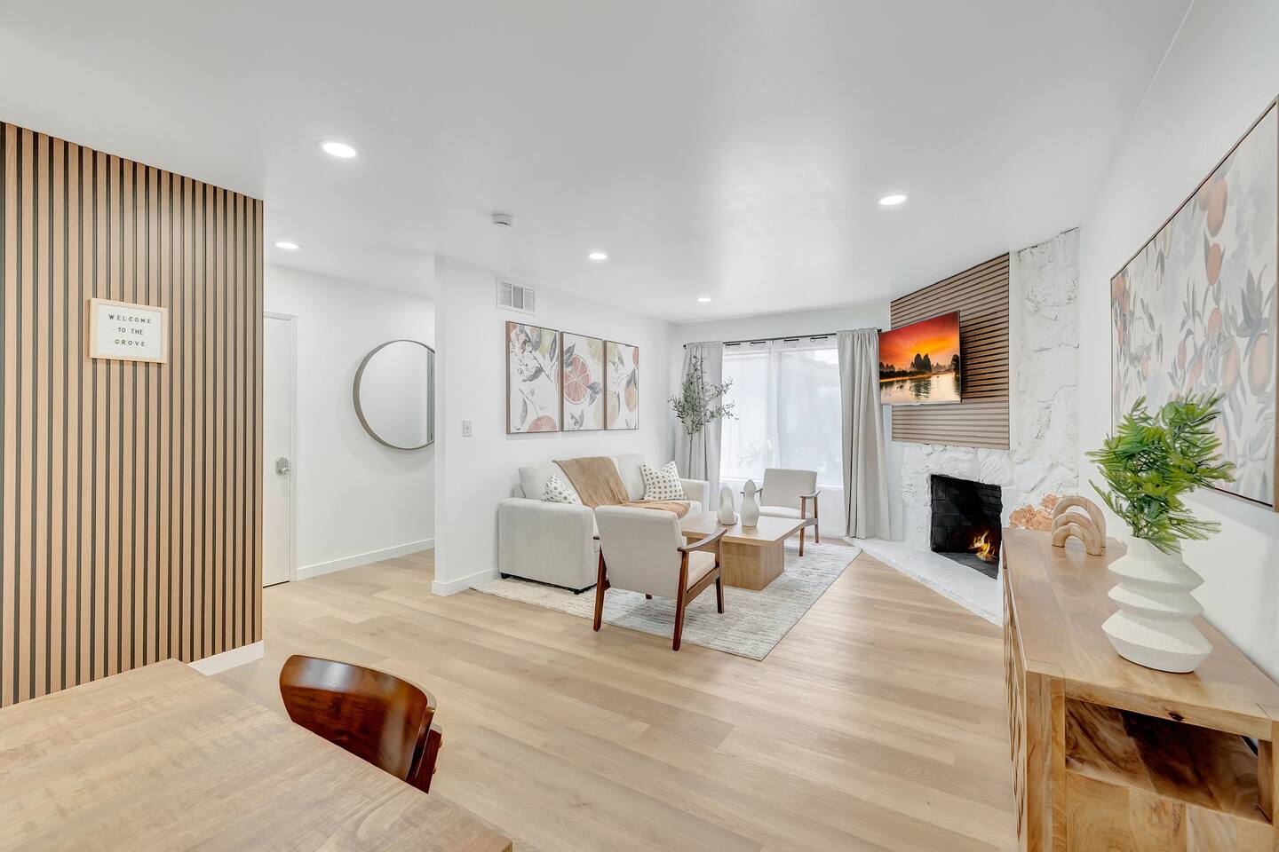 Welcome to Your Serene, Contemporary Retreat PRIME LOCATION - Just 8 minutes driving to Disneyland - Only 8 minutes driving to the Anaheim Convention Center - 10 minutes driving to Angel Stadium - Beautiful beaches within 22-30 minutes - Explore Los Angeles in 30-50 minutes - Convenient and central location in Orange County YOUR HOME AWAY FROM HOME - Spacious 1100 sqft apartment with an outdoor patio - 2 bedrooms and 2 full bathrooms for ultimate comfort and privacy - Cozy living room with a fully equipped kitchen for all your culinary adventures - Recently remodeled with stylish, high-quality finishes TOP NOTCH AMENITIES - High-speed WiFi for all your browsing needs - Smart TV with Netflix, Youtube, Disney+, Hulu, ESPN and more, for your entertainment - Modern kitchen appliances - Washer and dryer in apartment - Dedicated parking space - Contemporary bathrooms - Accommodates up to 6 guests: 1 King Bed, 1 Queen Bed, 1 Sofa Bed - Coffee machine and coffee! - Travel crib pack and play and high chair available upon request - Patio with outdoor furniture OUR COMMITMENT TO YOU We’re devoted to making your stay in Orange County truly memorable and delightful. HOUSE RULES - No loud music or large gatherings (maximum of 6 guests total) - No smoking of any kind, including marijuana - Be considerate of our neighbors and keep noise levels down - One assigned parking spot; additional street parking is available RESPECTFUL ENVIRONMENT This is a peaceful home, not a party venue. We ask all guests to respect our community and their surroundings. ALWAYS AT YOUR SERVICE Your host is here to ensure your stay is smooth and enjoyable. Feel free to reach out for any assistance! Thank you for choosing The Grove home for your next adventure. We look forward to welcoming you on your next stay! Please Note - At owner's discretion additional verification and/or background check/credit check may be required prior to check in. A signed guest lease and small deposit may also be required prior to check in.